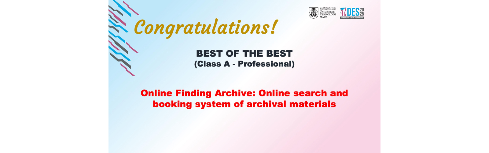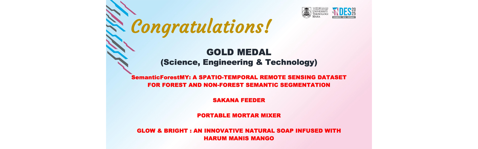 Pertandingan inovasi “The 14th International Invention, Innovation and Design Competition 2025 (INDES 2025)” dianjurkan bagi menyediakan platform kepada peserta untuk mempersembahkan hasil ciptaan, inovasi dan rekaan yang berpotensi untuk dipaten dan dikomersilkan kepada umum. Pertandingan ini adalah terbuka kepada semua warga Institusi Pengajian Tinggi (Awam/Swasta), pemain industri, pelajar sekolah (rendah atau menengah) dan tidak kira sama ada wakil dari dalam negara atau luar negara. Pihak penganjur mensasarkan bilangan sebanyak 200 penyertaan.